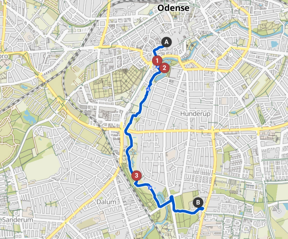 In die City fahren wir an dem Flüsschen Odense Ä entlang, quer durch den Zoo. Eine hübsche Strecke, ohne Komoot hätten wir die nie gefunden.