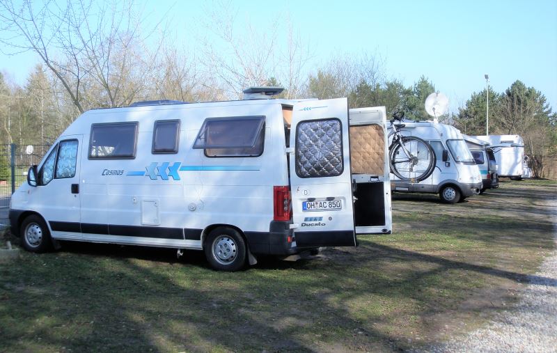 Fahren doch gleich nach Berlin-Tegel. Kommen gut durch, sind gegen 13:00 Uhr da. Platz ziemlich voll, erstmal einen Notplatz bis morgen. Abrötern und Kaffee, dann nach Tegel rein einkaufen, lecker Brot und Pasten vom Türken.