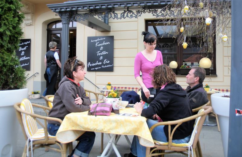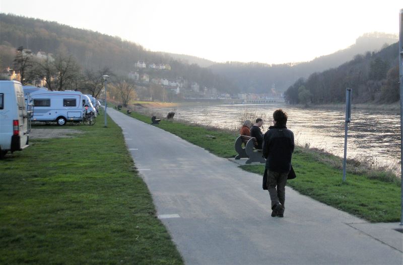 Arne hat uns eine SMS geschickt, sie sind in Königstein, Wetter gut, Platz auch. Wir beschließen, auch dorthin zu fahren. Dort ist es wirklich schön und Dresden lohnt sich immer. Sind gegen 13:00 Uhr da, trinken gemeinsam Kaffee und klönen. Sind beide nett. Am Nachmittag fahren wir mit den Rädern in den Ort. Dort lecker Torte gegessen und rum gelaufen. Am Abend draußen gesessen, geredet und etwas getrunken.