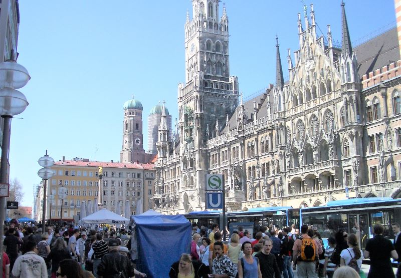 Gegen Mittag geht’s dann mit Bus und Bahn zum Marienplatz. Das sind 6 Stationen, 15 Minuten, super! Da erstmal in einen Buchladen und Info über München besorgt, dann in der Sonne einen Kaffee. Zur Begrüßung ertönt über uns das Glockenspiel im Turm des alten Rathauses. Dann kuzen Abstecher zu Deichmann, Ballerinas, man war das voll. Dann zum Viktualienmarkt, hier gibt’s alles! Auch Schicki-Micki-Zelte mit Krustentiere und Wein, Prosecco und spinnerten Leuten. Kaufen Fleisch, deutschen Spargel und neue italienische Kartoffeln. Dann dort eine Kleinigkeit gegessen, Leberkäse und Krustenbraten. München macht einen gemütlichen Eindruck! Langsam zurück, morgen mehr.