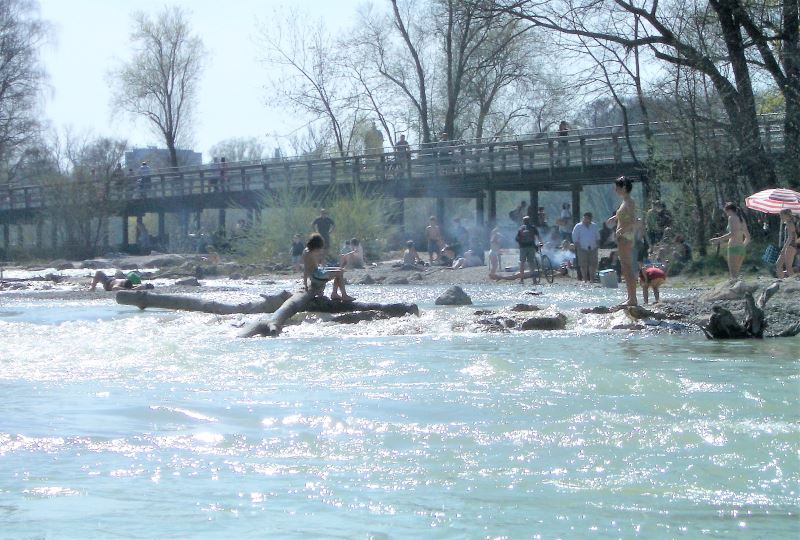 Nach dem Osterfrühstück lesen und Sonne genießen. Dann mit dem Fahrrad an der Isar entlang in den Englischen Garten. Schöne Strecke, brauchen ca. 1 Std. und überall viel los, Radfahrer, Spaziergänger und Sonnenanbeter. Der Englische Garten ist voll, wir finden aber noch einen Platz am China Turm, es gibt Bier und Haxen. Auf zum nächsten Biergarten an einem See, die Leute sonnen sich hier auf einer großen Wiese. Es wird langsam immer voller, wir beschließen zurück zu fahren, brauchen noch Geld. Halten immer mal wieder an der Isar und machen Pause. Abends lecker Brot und lesen. Morgen geht’s weiter, wir freuen uns schon etwas neues zu sehen.