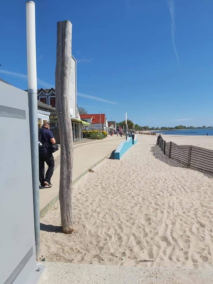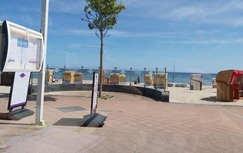 Nachmittags erkunden wir den Ort mit dem Rad. Auf der Promenade ist doch schon einiges los, das mit dem Abstand klappt bis auf einige unver­bes­ser­liche.