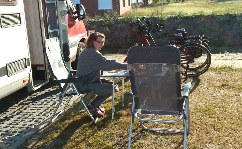 Nachmittags können wir dann am Womo in der Sonne sitzen. Der Stellplatz ist mittlerweile ausgebucht!