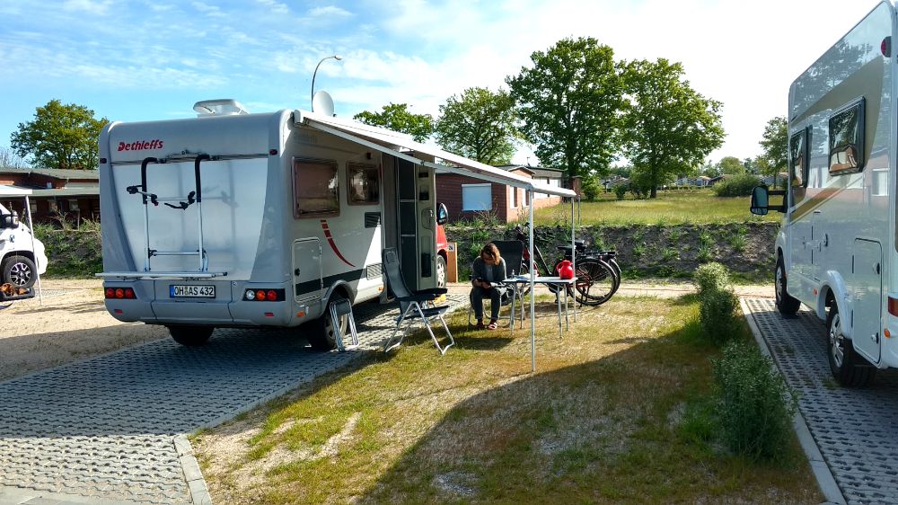 Etwas unwohl ist uns schon, aber wir wollen es testen, wir bleiben im Land und wenn es zu voll wird fahren wir wieder nach Hause. Gegen 08:00 Uhr brechen wir Richtung Grömitz auf, wir wollen den neuen Stellplatz „Achtern Diek“ am Lenster Strand ausprobieren.