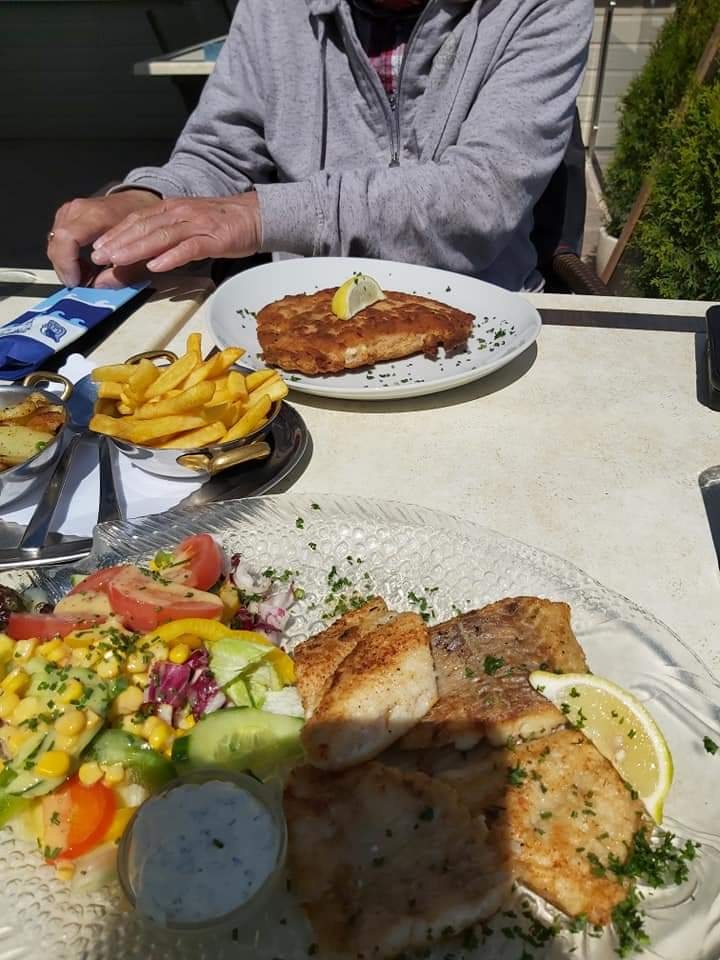 Brötchen gibt’s ab 07:00 Uhr gleich um die Ecke bei PUCK. Tagsüber tingeln wir durch Grömitz. Mittagessen gibt’s auf der Außenterrasse der Standhalle unmittelbar an der Promenade (ging so 4+).