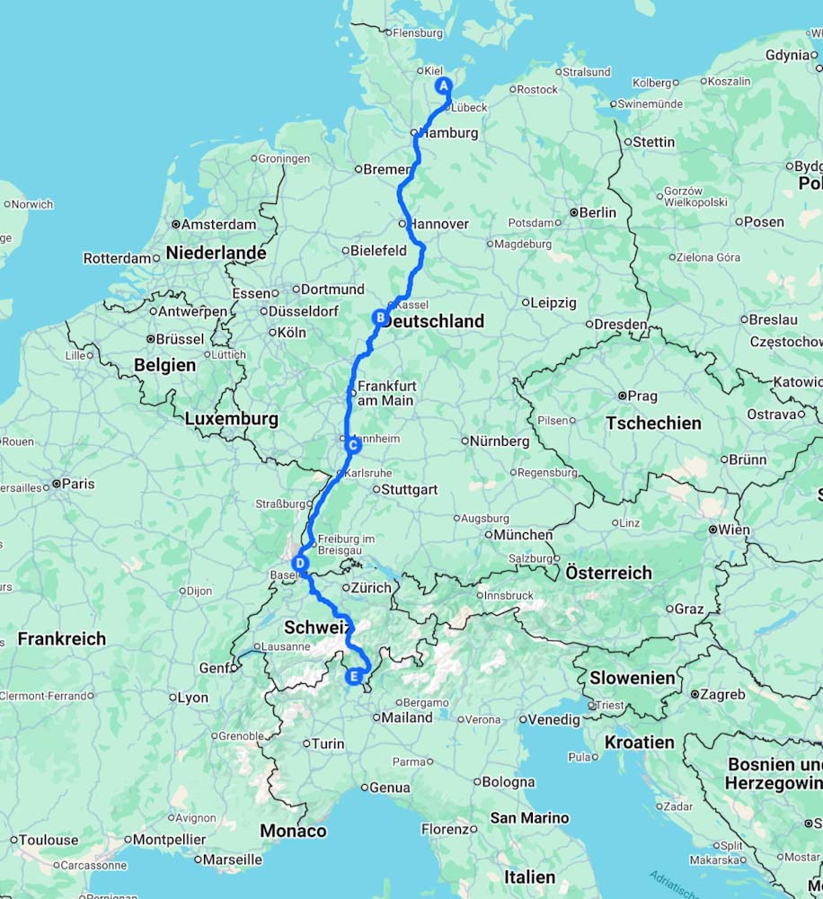 Bei Congstar muss ich entweder zusätzliche Datenpässe buchen oder einen neuen Tarif abschließen, weil dort erst bei Verträgen ab 2025 die Schweiz im Rooming eingeschlossen ist. Und bei Sim 24, der Anbieter auf meinem Womo-Router, kostet 1 GB Daten 4,99 €, also ca. insgesamt 300,- € von dem was ich jetzt habe.