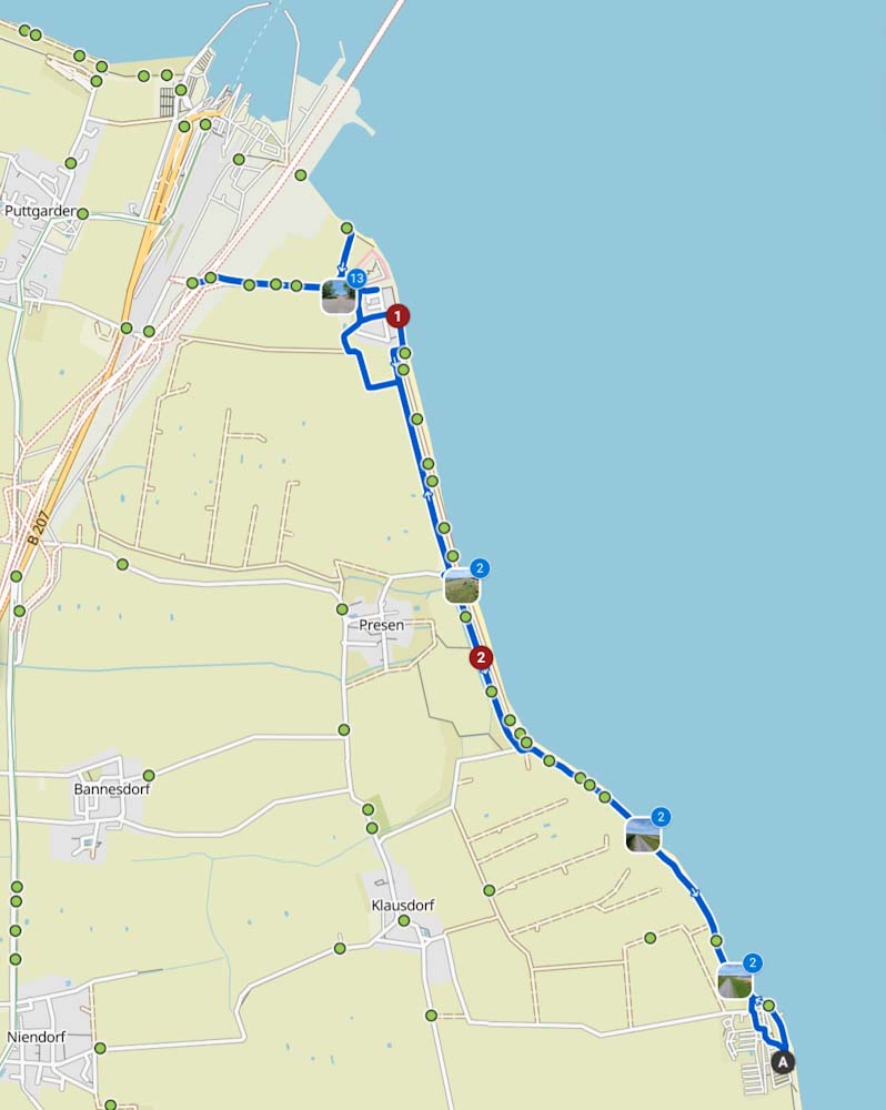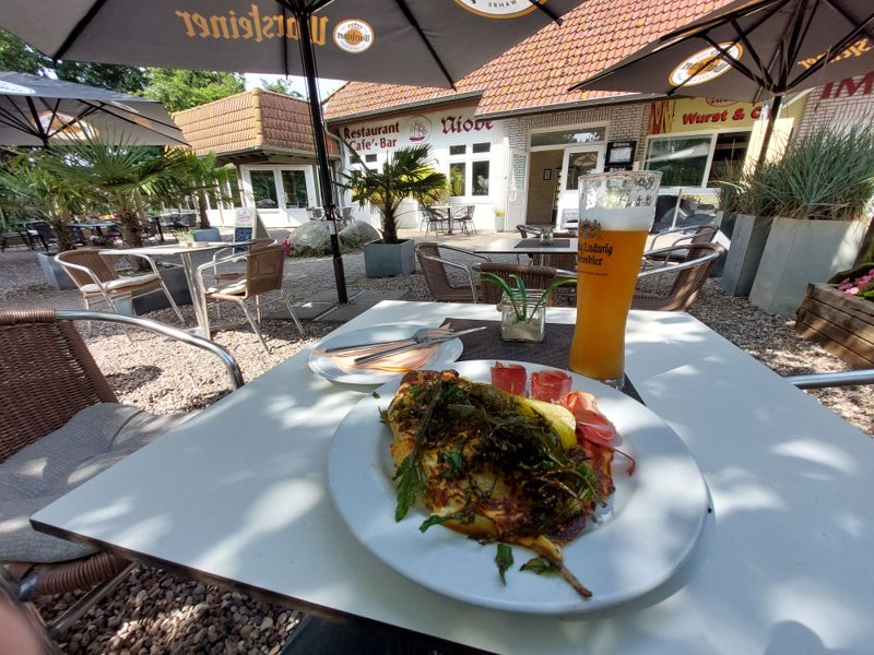 Nach dem Frühstück mache ich eine Radtour Richtung Puttgarden bis zur Beltbude Grüner Brink. Die hat jedoch noch zu und deshalb gibt’s auf dem Rückweg eine Stärkung im Restaurant am Niobe.