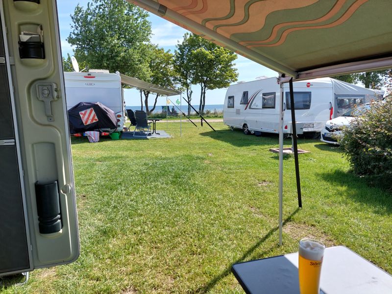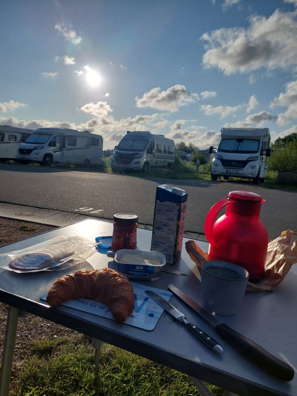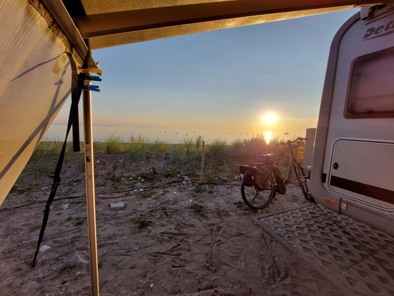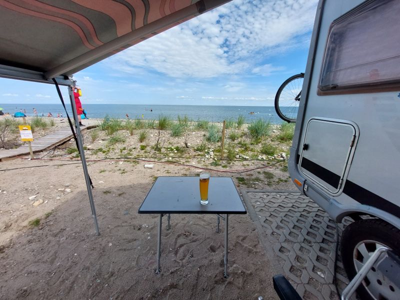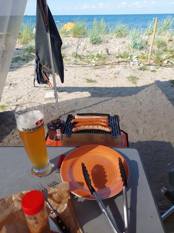Nach einem ausgiebigen Frühstück geht’s weiter nach Altenteil. Ich habe die letzten beiden Plätze in der 1. Reihe für 2 Tage auf dem Campingplatz Ahoi Camp ergattert. Und bei dem Ausblick gibt’s natürlich was zu Futtern am Womo.