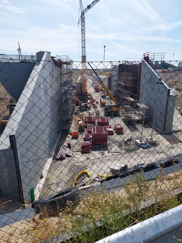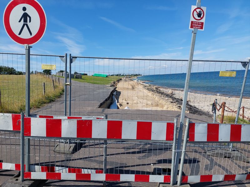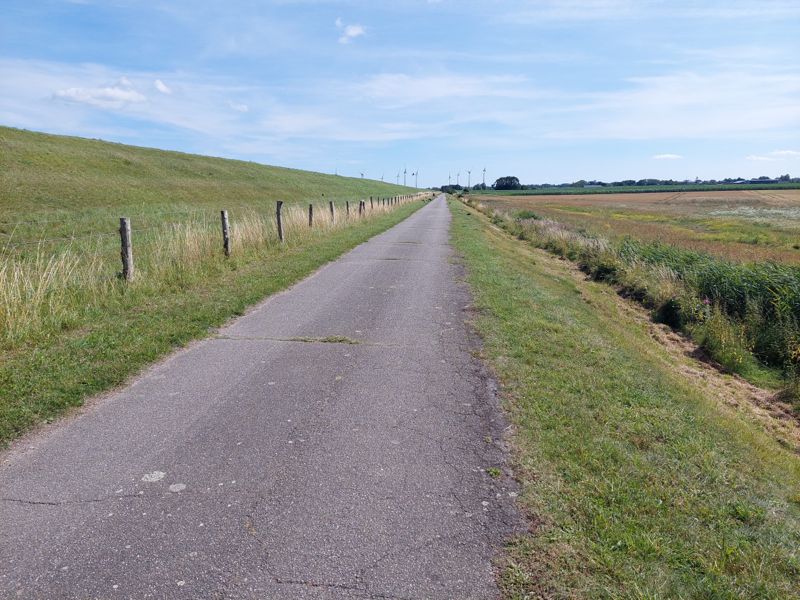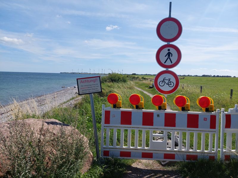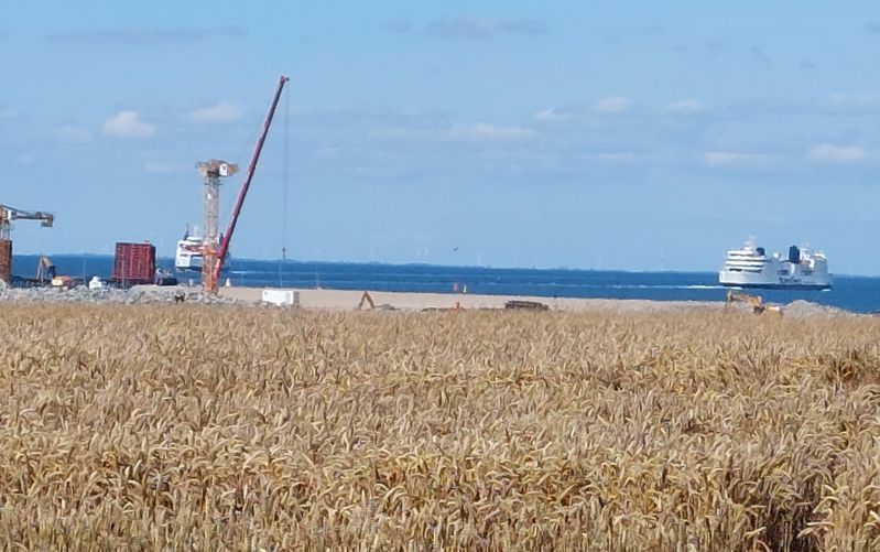 Nachmittags radel ich an der Küste entlang zur Großbaustelle des geplanten Fehmarn Belt Tunnel, gruselig! Ein Abschnitt der Strecke vorm Deich ist gesperrt, die letzte Sturmflut hat zugeschlagen.