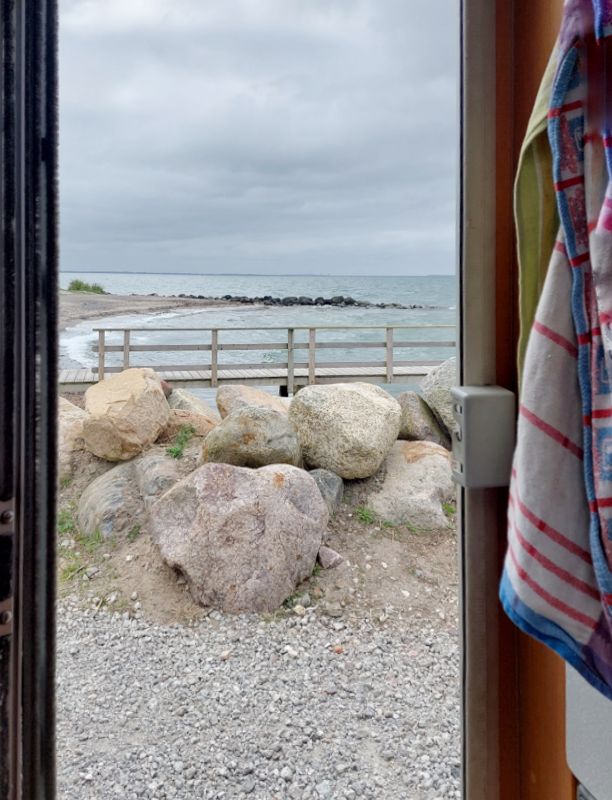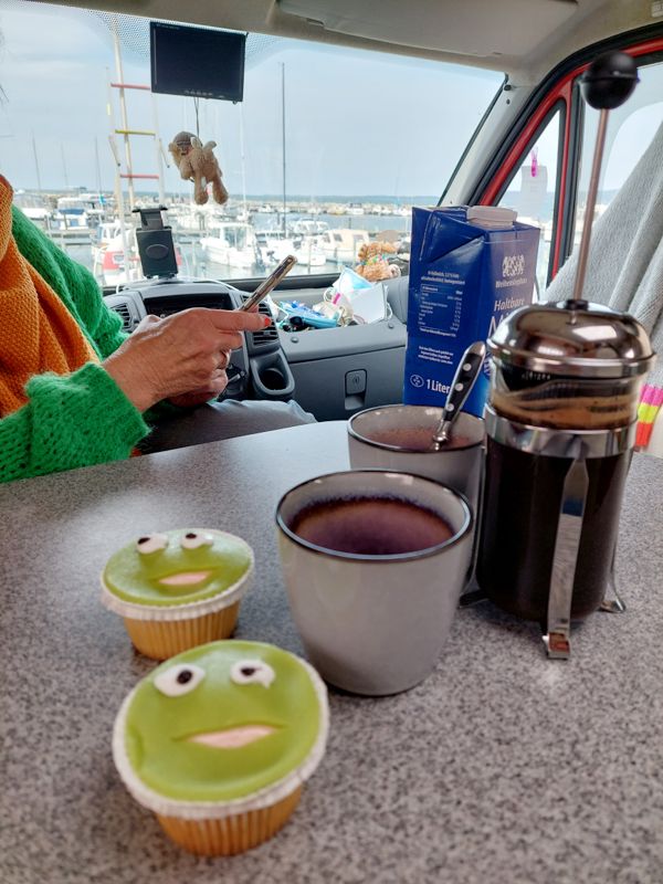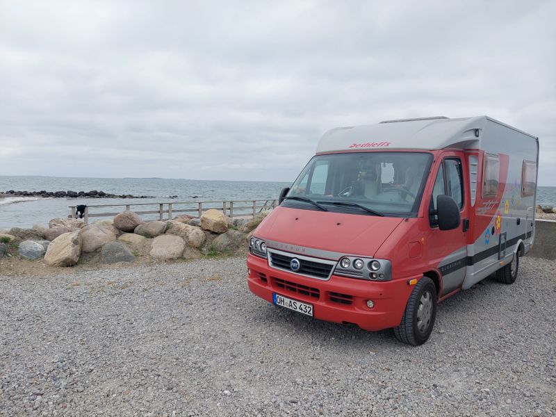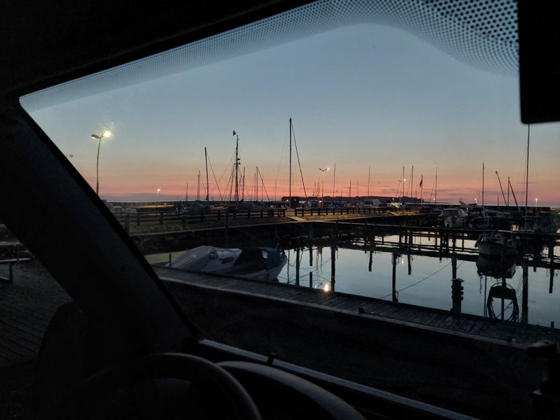 In Dänemark ist langes Wochenende und überall ist’s relativ voll. Gestern Abend haben sich noch weitere Womos zwischen die Boote gedrängelt. Wir wollen weiter und sind gespannt, ob wir ein schönes Plätzchen finden. Ich habe 2 Stellplätze und einen Campingplatz rausgesucht, irgendwo sollte schon was frei sein.