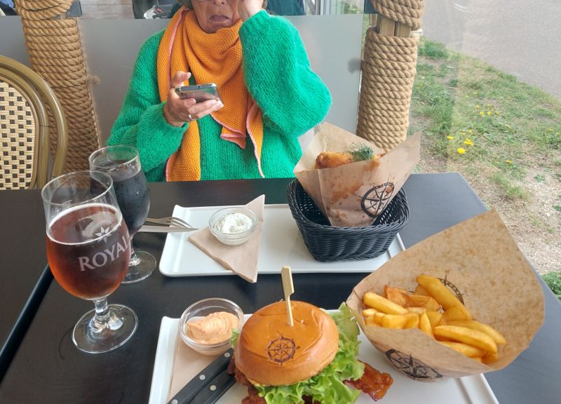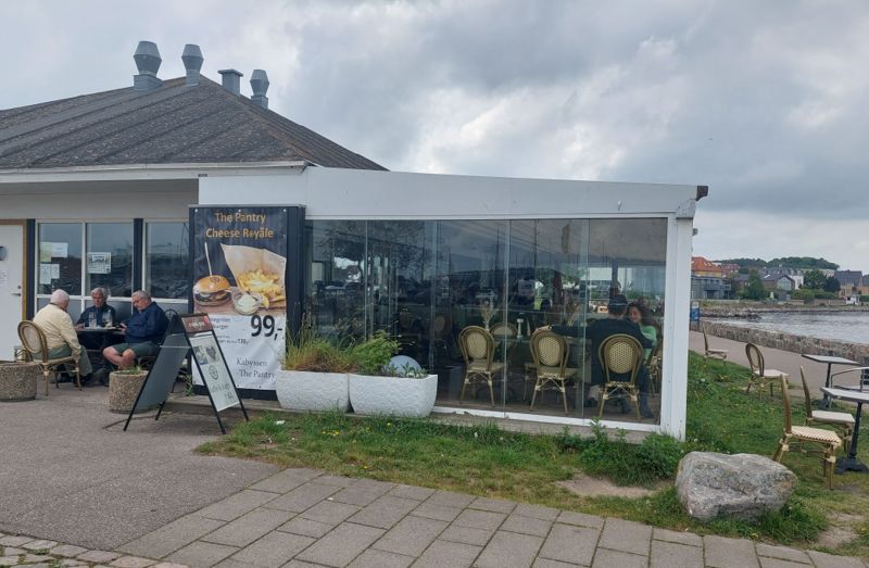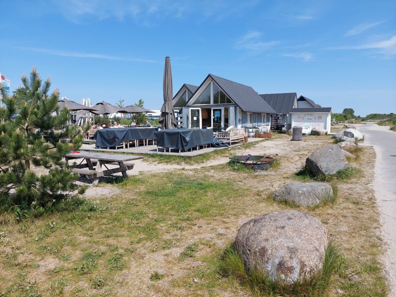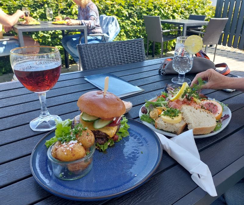 An der Bucht von Nykøbing gibt’s im Café Nokken was zu futtern, Burger und Lachssalat, einfach lecker, eine glatte 2+.