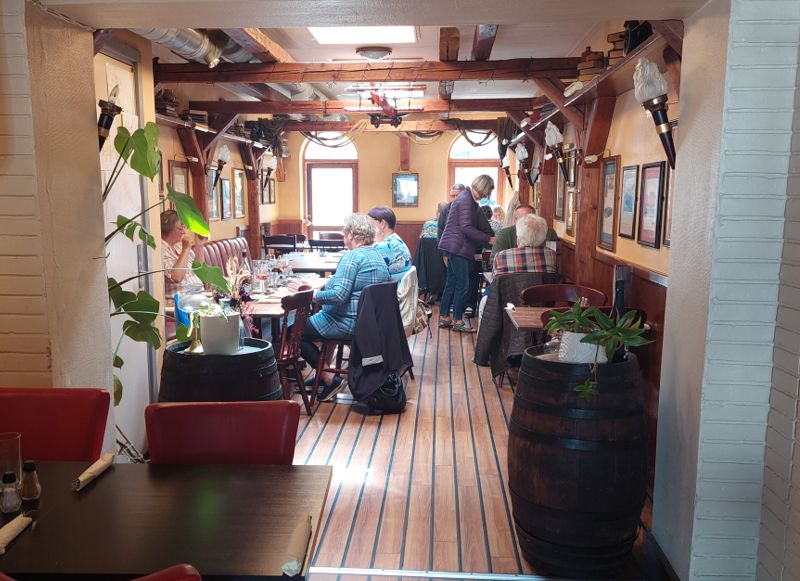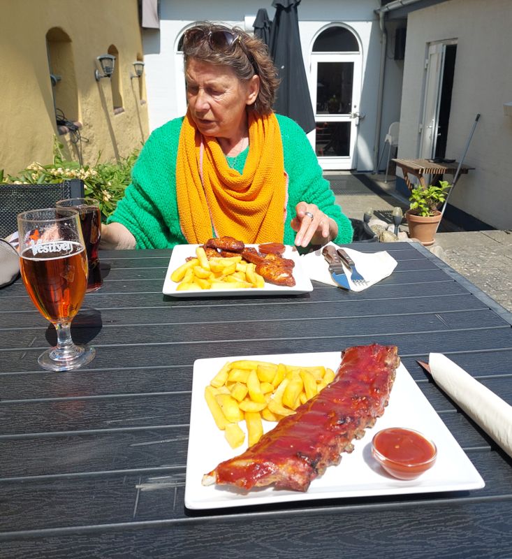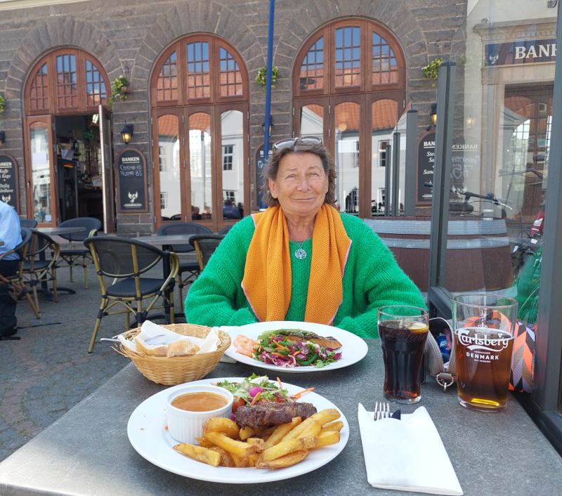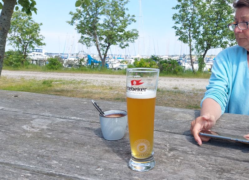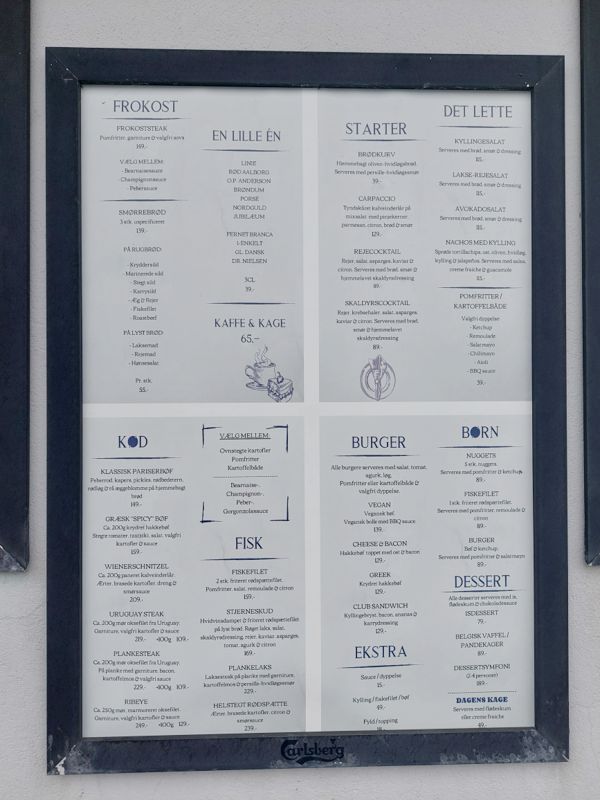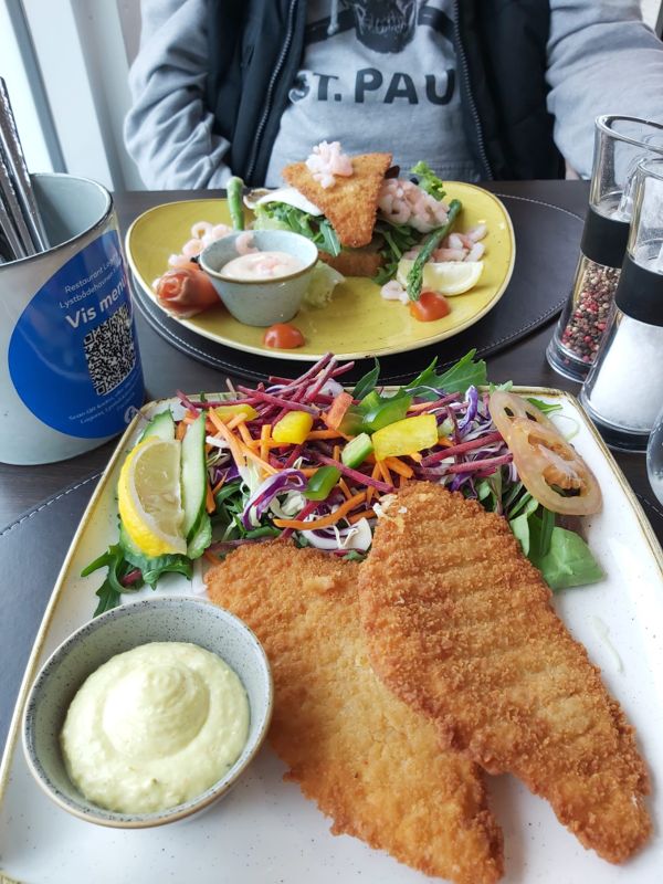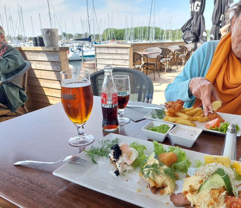 Dort wollten wir eigentlich im Restaurant Hummeren v/Sussi Sonneby etwas essen, es hatte sehr gute Bewertungen bei Google. Aber irgendwie wars dort muffig und roch nach altem Frittenfett. Also zurück in unsere Marina ins Restaurant Fregatten. Genau die richtige Entscheidung, das Smørrebrød und die Fish and Chips waren super lecker, eine glatte 2.