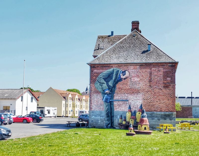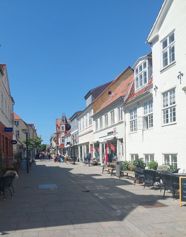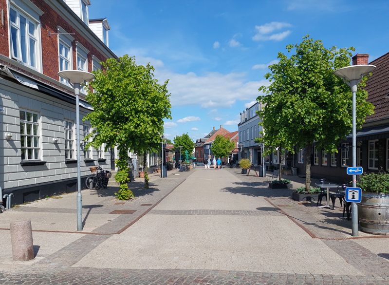 Durch die Einkaufsstraße sowie die Uldgade mit ihren kleinen Häuschen und vorbei am Skulpturenpark mit der runden Brücke geht’s zurück.