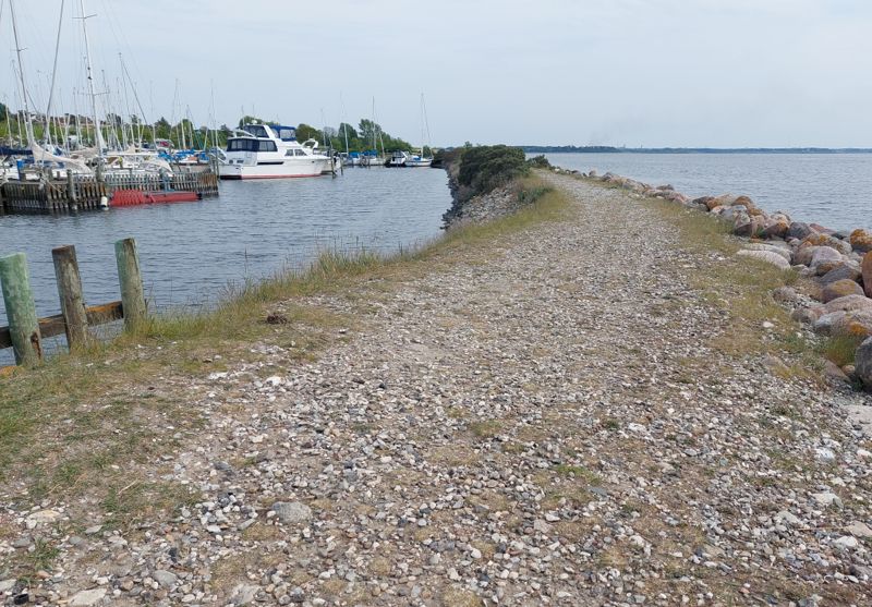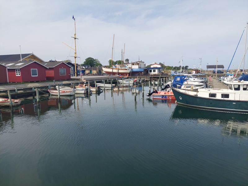Nach gut 40 km Richtung Norden erreichen wir das kleine Örtchen Havnsø. In der Marina können im Sommer auf den Winterliegeplätzen der Boote Wohnmobile stehen. Ein paar Stellplätze können schon benutzt werden und alle noch nicht belegt. Und so stehen wir vorne direkt am Hafenbecken. Später am Nachmittag sind dann alle 4 Plätze belegt.