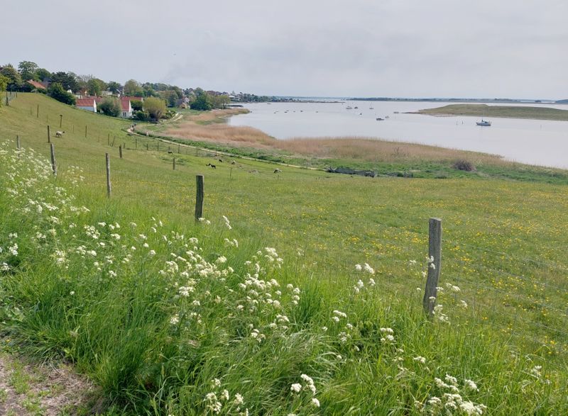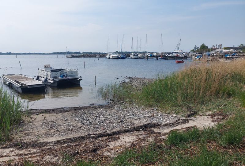 Schöne Wege zum Radfahren am Wasser gibt’s hier nicht. In beide Richtungen geht die Bebauung bis unmittelbar an den Strand. Auf die naheliegende Landzunge kommt man auch nicht, hier befindet sich ein Schießplatz für Jäger! Also auf zum kleinen Kaufmannsladen und dann den Ausblick im Womo genießen.