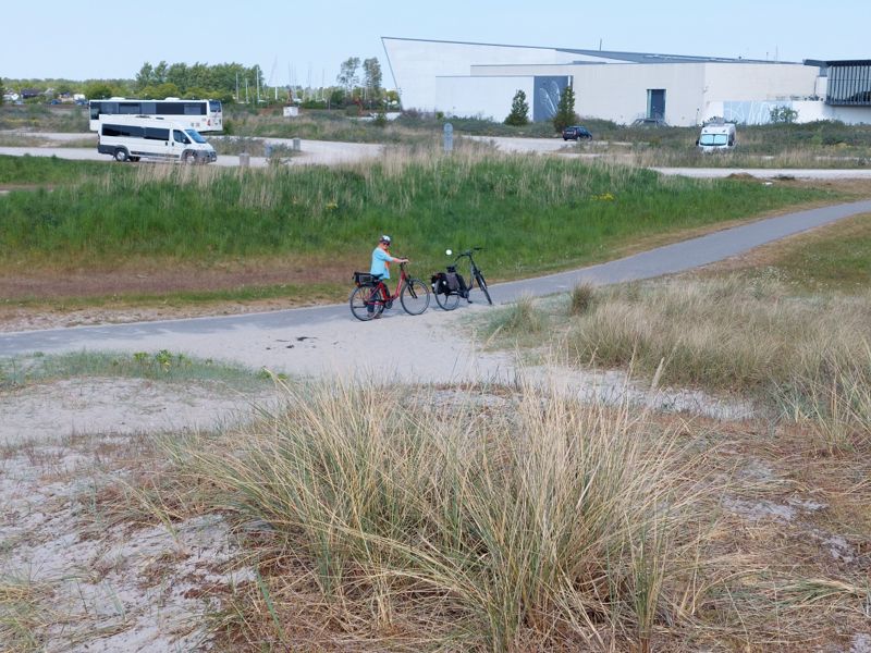 Nach dem obligatorischen Ankommens Bierchen und Käffchen geht’s mit den Rädern auf der Düne entlang bis zum nächsten Yachthafen.