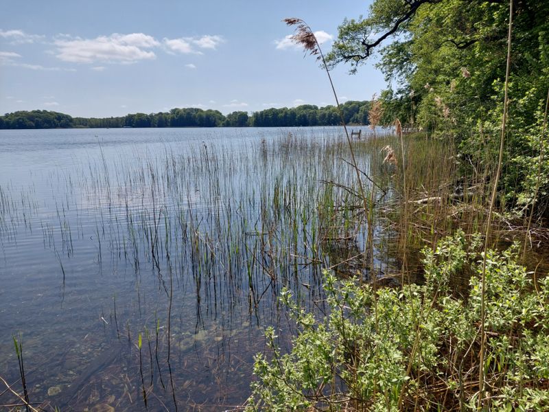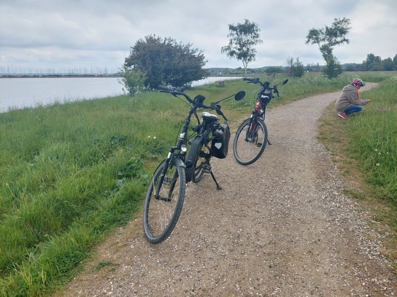 Und tatsächlich, hier ist es wesentlich windstiller. Wir radeln am Ufer des Sorø So entlang.
