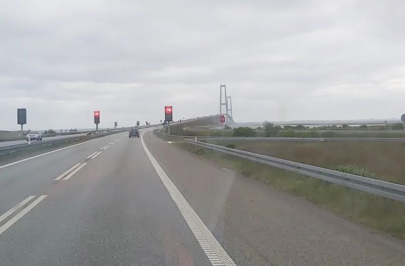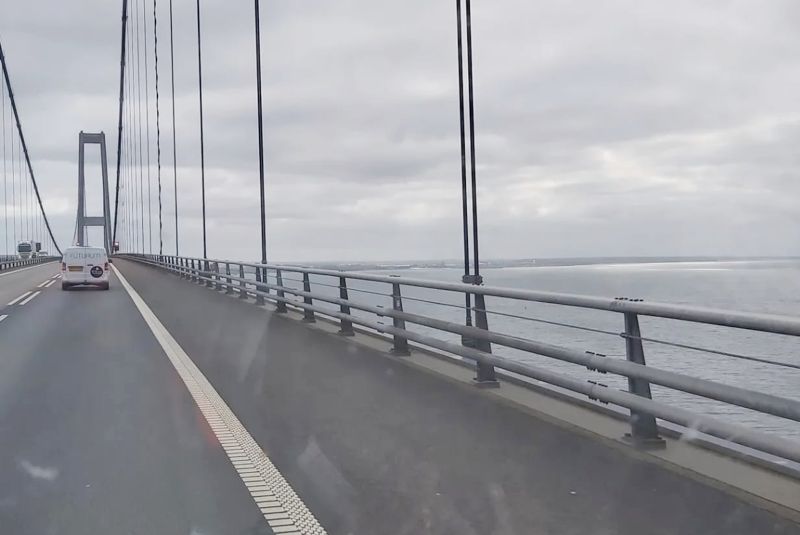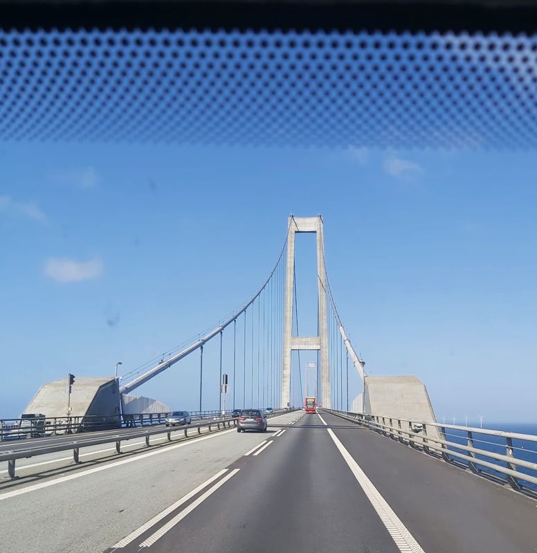 Es piepst, die Schranke geht hoch und wir fahren auf die Storebaelt Brücke.