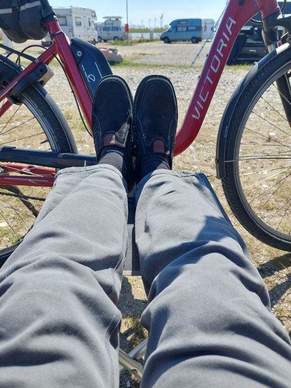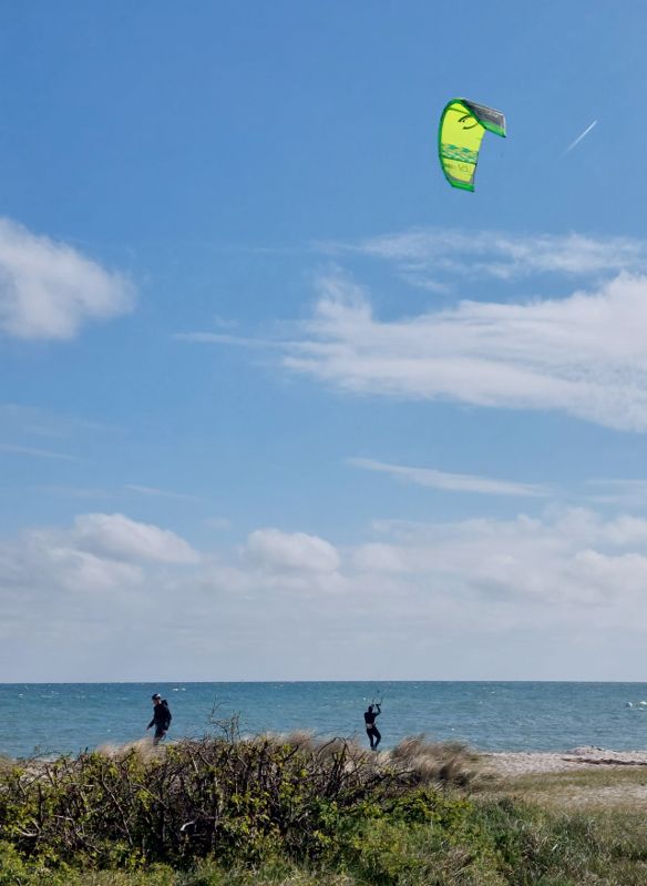 Vormittags legt sich der Wind etwas. Aber für eine Fahrradtour noch zu doll, also Platz, Strand und Ausblick genießen.