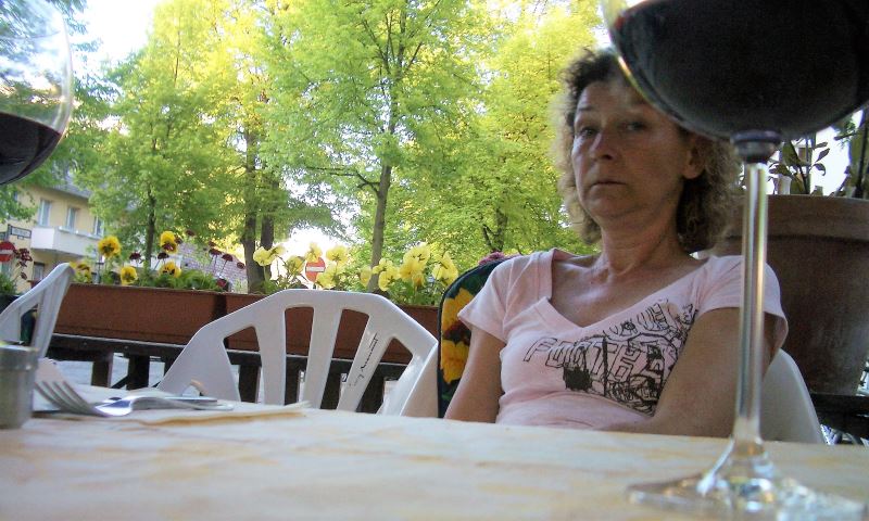 Gut durchgekommen, 2 1/2 Std. bis Berlin-Tegel. Der Stellplatz ist sehr schön und zentral, er liegt auf dem Gelände einer ehemaligen Baumschule. Abrötern und Kaffee, dann nach Alt-Tegel rein, 5 Minuten mit dem Rad. Damit hatte ich nicht gerechnet. Hier gibt es eine richtig große Fußgänger­zone mit vielen kleinen Läden, Karstadt, C&A, Cafés und Restaurants. Am Ende landen wir bei einem Italiener, das Essen war eine recht gute 3+, der Service auch gut. Dann fürs Abend­essen in einer Markt­halle eingekauft. Dort gibt es alles, und frisch. Abends lange Draußen gesessen, tagsüber hatten wir bestimmt 28°, Super.