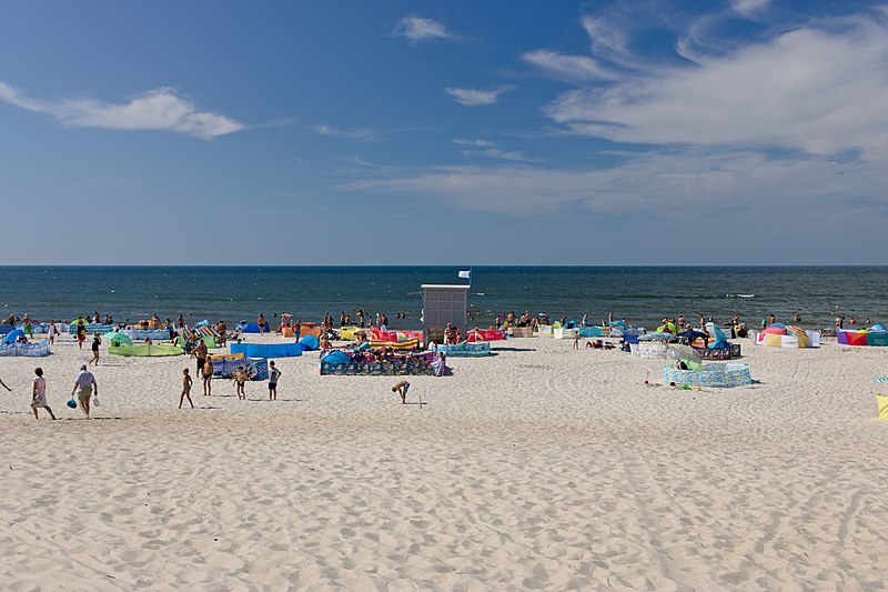 ein ehemaliges preussisches Seebad, gehört heute zu den schönsten Bade- und Fischerorten der Gegend mit einem hübschen, historisch erhaltenen Ortskern. Vom Hauptplatz blickt man über die neu gestalteten Promenaden auf die unterhalb der Steilküste gelegenen breiten Sandstrände. Hier liegen die kleinen Fischerboote der Rewaler Fischer, die täglich zum Fischfang ausfahren und anschliessend ihre Boote mit Winden auf den Strand ziehen.
